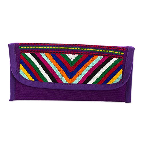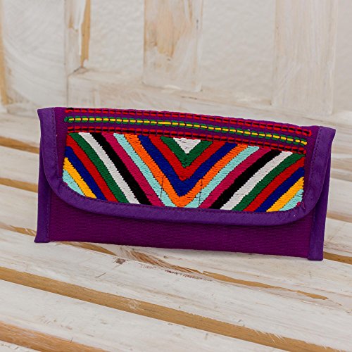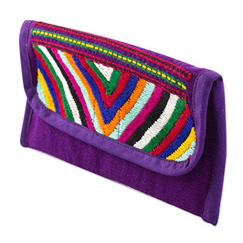About this item: "You'll find that this is a really practical wallet to have, it has a coin purse and two compartments for bills," says the representative for Association of Chajul Women Weavers. They weave the cotton wallet on the backstrap loom in a rich aubergine shade featuring a flap of many vibrant colors. The pockets and compartments share the same aubergine cotton lining. - Do not bleach