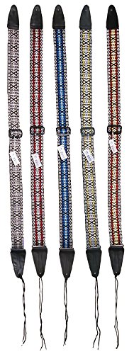 - Feature : Retro Reissue Guitar Strap-Midnight Sky Blue Theme (blue, light blue, white, orange, and black threads) / Woven Tapestry Pattern Hootenanny Strap with String Ties for Acoustic Guitars / 2" wide Guitar Strap with No Mar Buckle, Adjustable Length from 35 1/2" to 59" for most players / 60's Hootenanny jacquard weave guitar strap with polypropylene backing, will not stretch or bleed / Elongated double layer top grain Leather Ends with reinforced stitching for extra protection and secure fit around your strap buttons