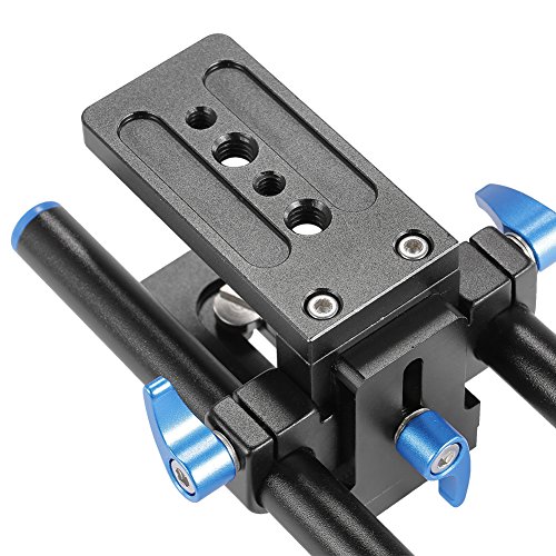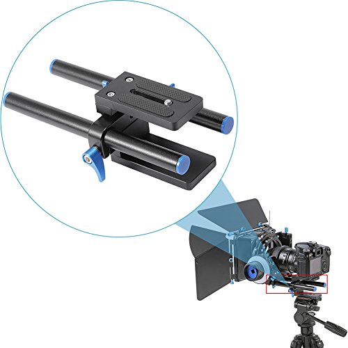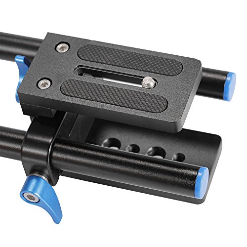 The base plate is a aluminum alloy multi-functional standard rail system that can be used for mounting DSLR Follow Focus Rig.^This Rail System has a central Tripod Mounting plate that makes a perfect balance between the camera and the front mount accessories (35mm Adapter/Matte box/Follow Focus).^Plate With the 1/4" screw, compatible with most DSLR/DVR.^The Tripod Mounting plate with the 1/4" and 3/8" screws threads, compatible with many support and tripods.^Note:15mm Rail Rod Support ONLY, other accessories not included.