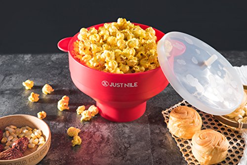JustNile Collapsible Microwave Popcorn Popper with Bonus Recipe Book, Silicone Popcorn Maker for Healthy, Irresistible, Homemade Popcorn on Movie Night, or Any Night, 100% Free of BPA and PVC - Red
