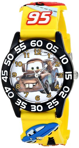 -. Binding : Watch -. Brand : Disney -. Department : boys -. EAN : 0843231077249 -. Feature : Round Time Teacher Plastic Watch with Disney's Tow Mater character on dial. / Meets or exceeds all US Govt requirements and regulations for Children's watches. / Recommended for Ages 3-7 years old. Includes a Time Teacher Punch Out clock for Parents to Teach their Children. / Accurate Japanese Quartz movement, scratch resistant mineral crystal, 3D strap. / Water Resistant to 99 feet: withstands rain and splashes of water, but not showering or submersion. / 1 Year Limited Manufacturers Warranty -. Label : Disney -. Manufacturer : Disney -. Model : W001508 -. MPN : W001508 -. PackageQuantity : 1 -. PartNumber : W001508 -. ProductGroup : Watch -. ProductTypeName : WATCH -. Publisher : Disney -. ReleaseDate : 2014-05-23 -. Studio : Disney -. Title : Disney Kids' W001508 "Time Teacher" Cars Watch With Yellow 3-D Band -. UPC : 843231077249