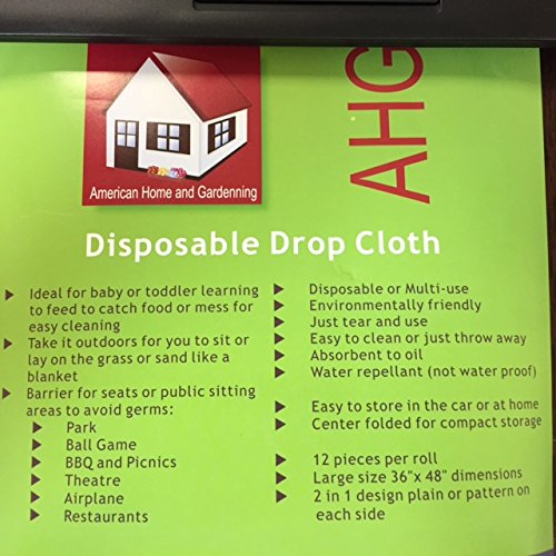 This environmentally friendly fabric will assist in cleaning up messes and maintaining a clean environment, both indoors and outdoors. Each roll of disposable fabric is perforated into 12 pieces to allow for convenience and comfort during daily use. Each piece is 3 feet by 4 feet to allow for maximum coverage for all your needs. Think of all the different uses. A messy toddler? No problem! A picnic at the park? No problem! You're even covered for a trip to the beach. No more cleaning or storing. Whether for daily home use or for a single use at an exciting event, this disposable drop cloth has GOT YOU COVERED.