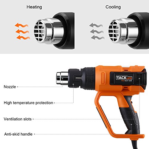 Tacklife HGP73AC Heat gun Precision control Variable Temperature Advanced 1600W 122℉~1112℉ (50℃~600℃) with Four Nozzle Attachments for Removing Paint, Bending Pipes, Shrinking PVC, Lighting BBQ