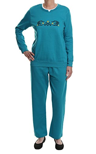 Binding : Apparel Product Description Pembrook's signature Embroidered Fleece Set is sure to be a favorite. This set is crafted from premium cotton/poly fleece to ensure easy-care comfort, incredible softness, durability and style. The fleece sweatpants feature a comfort ribbed waistband and side seam pockets. The fleece top features a contract color neckline, ribbed bottom band and cuffs. Top it all off with a beautiful multi-needle embroidery design and the set is sure catch the eye. Machine wash and dry. This set is sized generously. 0