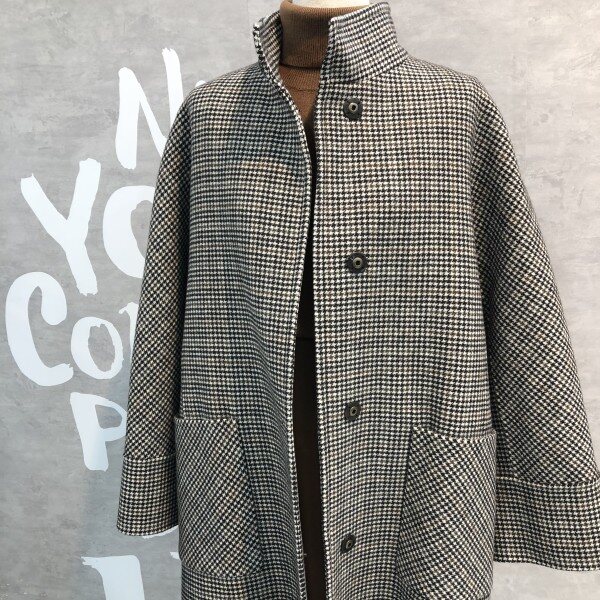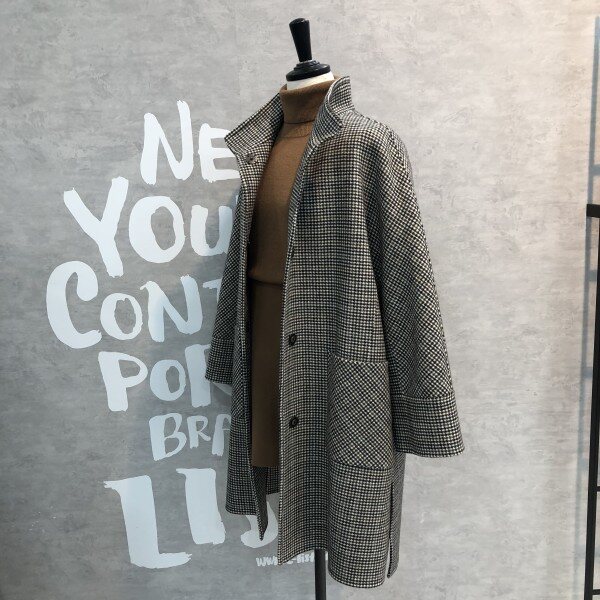 오버핏 실루엣에 빅 포켓이 포인트인 건 클렙 체크패턴의 핸드메이드 울코트입니다