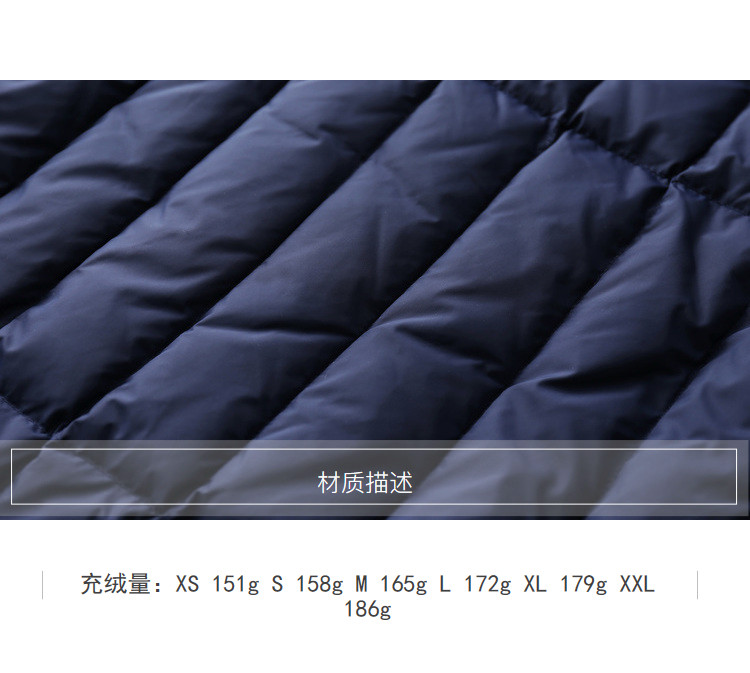 | 面料成分: | 面料:100%锦纶 里料:100%聚酯纤维 胆料:100%聚酯纤维 帽子填充物:100%聚酯纤维 |