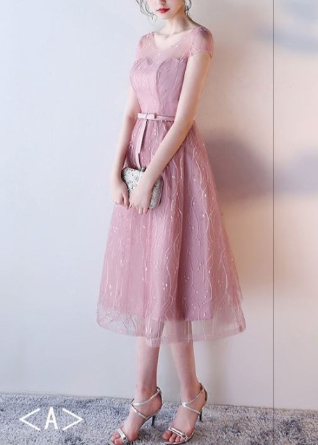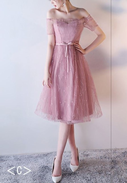 女性らしい上品なパーティードレス。