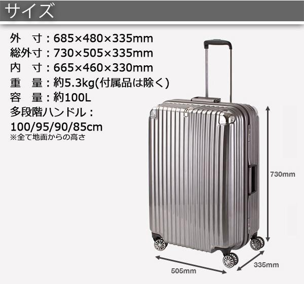 | 仕様 | 容量:約100L(目安:7泊以上) TSAロック |