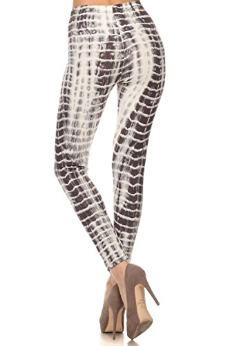 -. Feature : Brown and white tie dye P.R.Int full length fitted leggings with high waist / 92% POLYESTER 8% SPANDEX