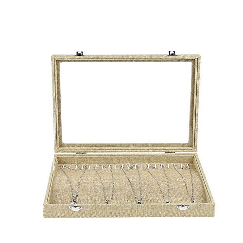 BOCAR Glass Top Jewelry Necklace Display Box Jewelry Showcase Organizer Holder with Lock (LX-XL)