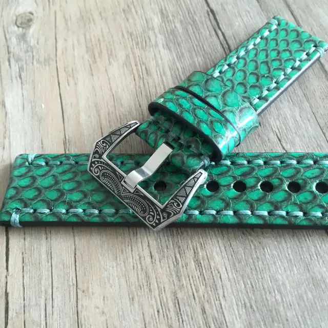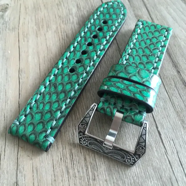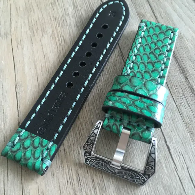 | [해외] 고급 가죽 스트랩 20 미리메터 22 미리메터 24 미리메터 26 미리메터 빈티지 녹색 정품 가죽 파이썬 피부 스트랩 팔찌 Panerai PAM 시계 밴드 |