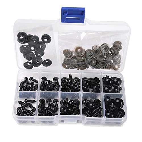 -. Feature : 100pcs 6-12mm Plastic Safety Eyes / 5 sizes in toal,each size 20pcs / With washers,all in one box / For amateur DIY doll manufacture craft / With thread end and washer buckle