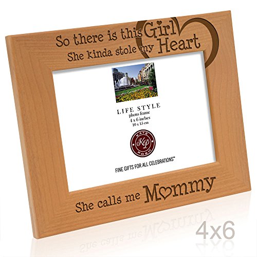 Kate Posh - So there is this Girl she kinda stole my Heart, She Calls me Mommy - Natural Engraved Wood Photo Frame - Mother and Daughter Picture Frame - Mother's Day Gifts (4x6-Horizontal)