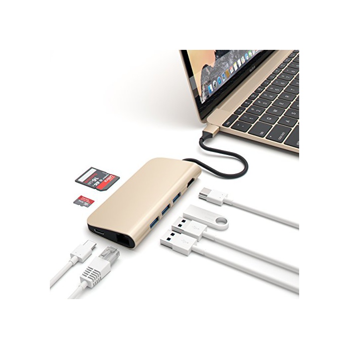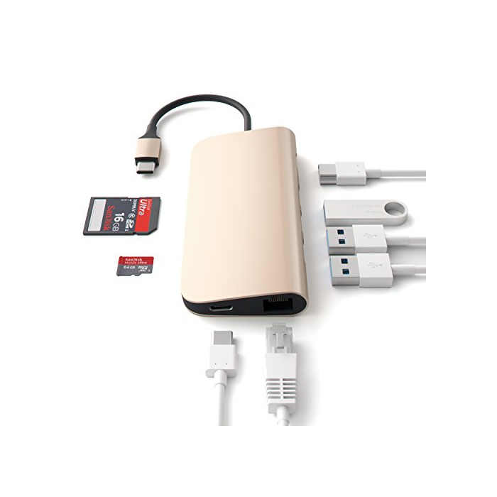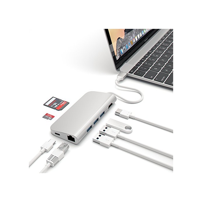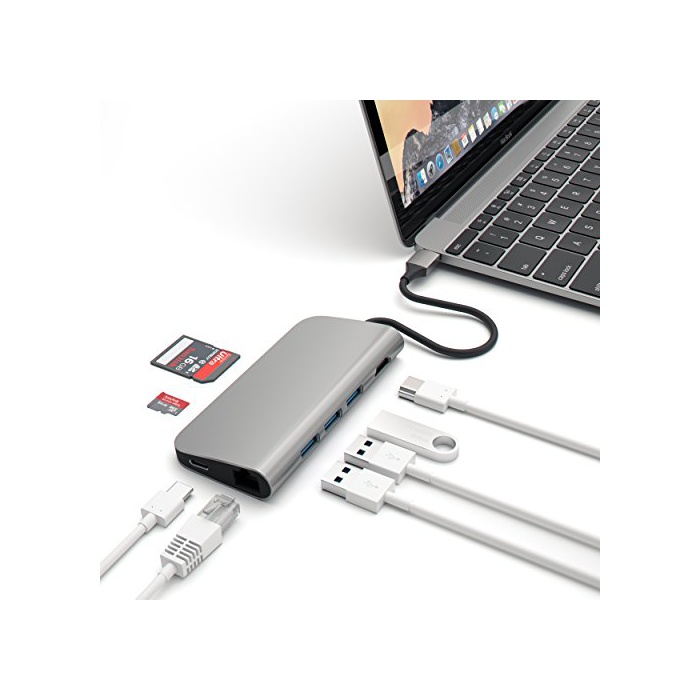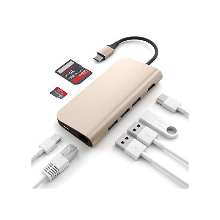 Satechi 충전용 패스 through Type C 4k HDMI출력 카드 리더 USB3.0포토x3 멀티 허브
