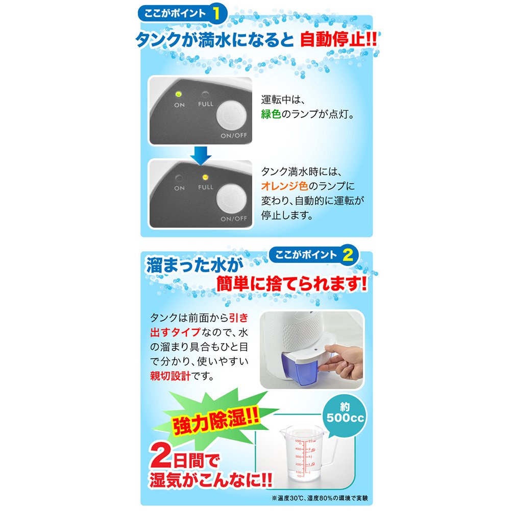 Dehumidification amount: 500 ML / day (30 ° C, RH 80%)