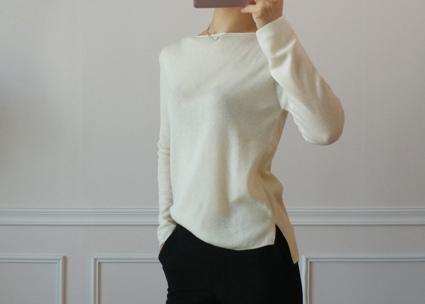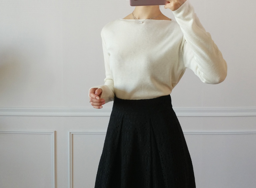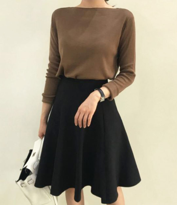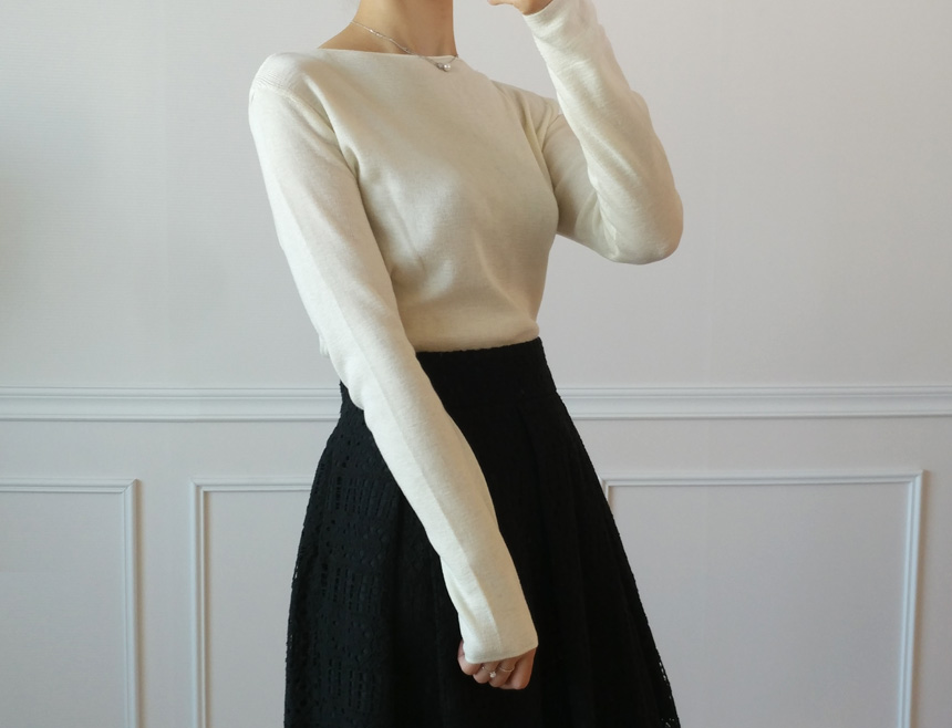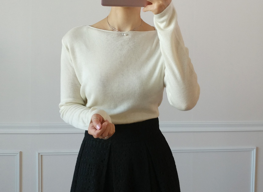 Selini Boat Neck Lip Neck Fall Cut 4 col Thin Dirt Soft Noodle Office
