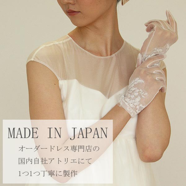 | グローブやレースの生地は繊細なものですので、場合によっては少しのひっかかりなどでも、糸ひけなどが発生する場合もございます。お取り扱いに気をつけてください。 |
