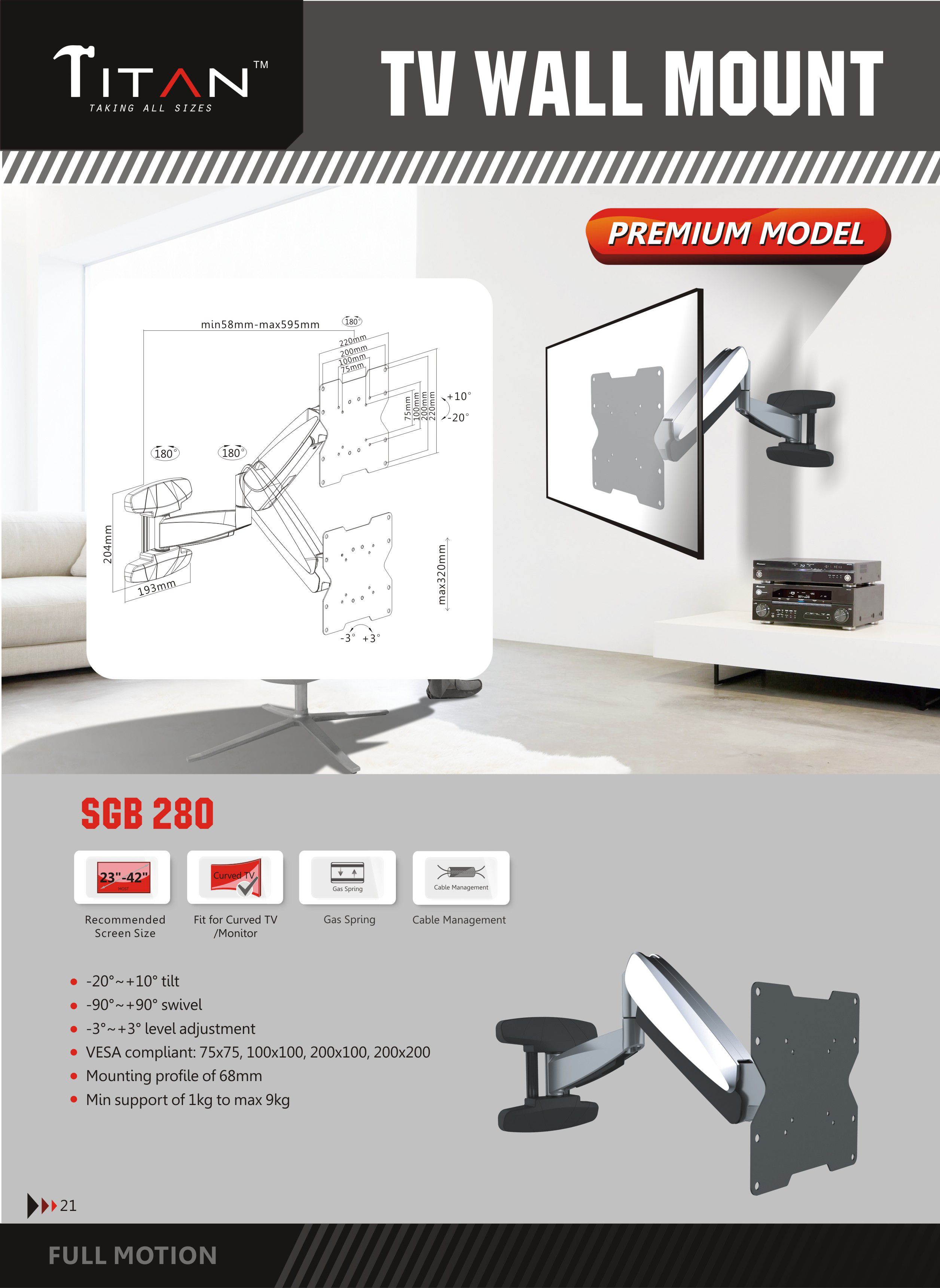 ·u0026nbsp;u0026nbsp;u0026nbsp;u0026nbsp;u0026nbsp;u0026nbsp;u0026nbsp;u0026nbsp; Model – SGB 280 FULL MOTION SINGLE ARM SWIVELu0026nbsp;BRACKET
