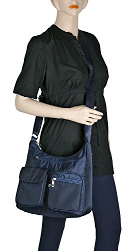 ?Comfortable shoulder strap with easy adjustments allows the bag to be worn over the shoulder or across the body and at a variety of lengths and to travel hands free Approximate Dimensions: 11 ½" W, 11" H, 4 ½" D, Strap length 54" L Drop 28", available in your choice of Black, Blue, Grey, Khaki 0 |