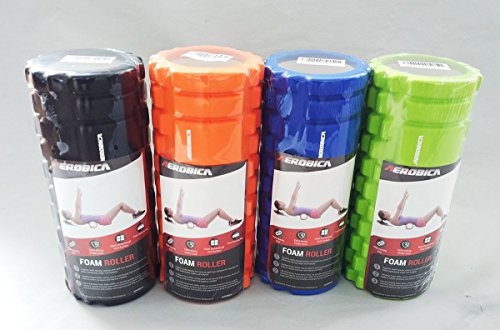 Studio : Aerobica Publisher : Aerobica Binding : Misc. Product Description Aerobica GRID foam rollers feature a multi-density exterior constructed over a rigid, hollow core that withstands repeated use while maintaining shape and integrity. The proven durability of the GRID has helped make it a trusted tool of physical therapists, massage therapists, athletic trainers and professional athletes. The GRID can be used to roll through tight muscles, knots and kinks to reduce soreness and improve mobility. Regular use of the GRID can provide benefits such as recovery from (or preventing) injuries, decreased muscle and joint pain, increased circulation and flexibility, improved balance and mobility and preparing the body for peak performance. The distinctive, multi-dimensional surfaces of the GRID replicate the feeling of a massage therapist's hands - wide and flat like the palm, long and tubular like the fingers, and small and firm like the finger tips. The textured surface of the GRID helps to maximize the flow of blood and oxygen to heal tissue. Aerobica 13-inch GRID features extra dense foam for working the tightest muscles. Purchase of Aerobica GRID foam roller includes free Carrying bag. 0