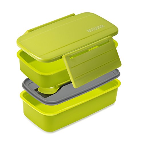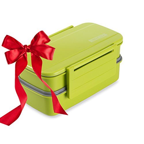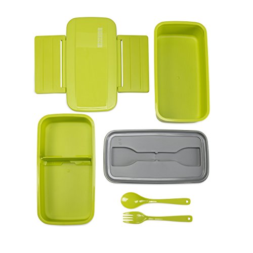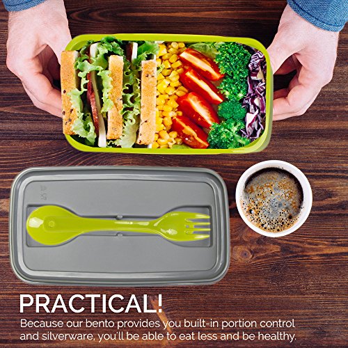 EXCITING! Because our bento features rounded edges and premium crafting of the containers, you'll see that it looks attractive all while optimizing a small space. This space-saving design is great because you drop the drab paper bag and move into a fab versatile lunch container with included matching utensils - fork and spoon set.