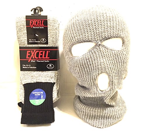 Product Description Urban City Grey Warm Winter Sock Hat Combo , for the cold winter days Nights , You Get 3 Warm Thermal Thick socks size 10-13 ,Plus you Get a Warm knitted Hat that can be used a Winter skull hat and a Full Face mask for them extra cold winter days 0