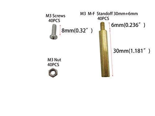 HVAZI 90PCS M3-0.5 Thread 40mm+6mm Brass Spacer Standoff Stainless Steel Screws Nut Male-Female