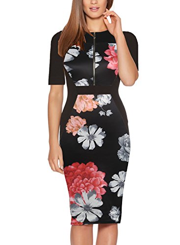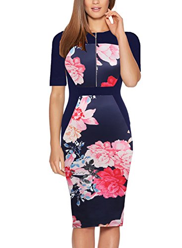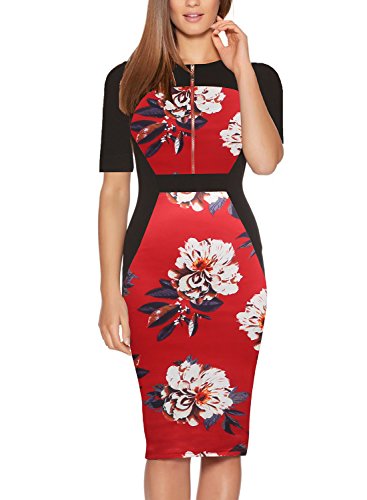 Design:All over floral print and contrast panel design,neck split,sleeveless midi pencil dress is perfect for summer season.