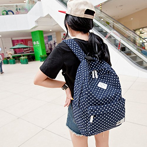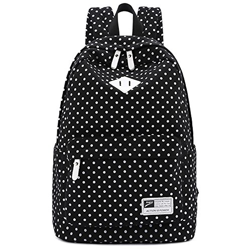 -. Brand : Hiigoo -. Department : girls -. Feature : Main material: high density canvas , cotton lining , leather balt and metal zips. / Dimension:12.99"L x 6.3"W x 17.72"H. / Structure: A total of 6 pockets. 1 zippered closure for the main pocket; 2 inner small pocket ; 1 outer small zippered closure pocket and 2 flank small pocket . / Uesd in the daily travel ,Weight lighter but durable.Fashion casual life style,General use for Female. / Hiigoo: It's such an awesome messenger bag that you will receive many compliments from your family and friends. -. PackageQuantity : 1 -. ProductGroup : Apparel -. ProductTypeName : LAGE -. Size : One Size -. Title : Hiigoo Classic Backpack Mainstream Canvas Big Shoulders Bags Satchels White Dots