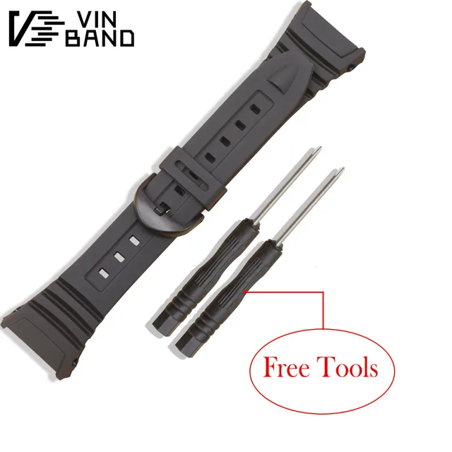 | [해외]Vinband 부드러운 고무 시계 밴드 스테인레스 스틸 핀 버클 손목 casio w-96h 스포츠 남성 여성 스트랩 팔찌 도구 |
