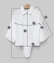 尺码 ①前衣长 ②后中长 ③胸围 ④下摆围 ⑤袖臂围 ⑥袖长