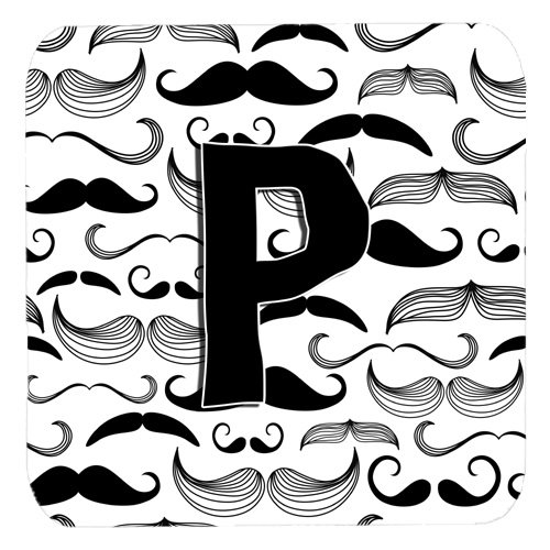 Caroline's Treasures CJ2009-PFC Letter P Moustache Initial Foam Coasters (Set of 4), 3.5", Multicolor