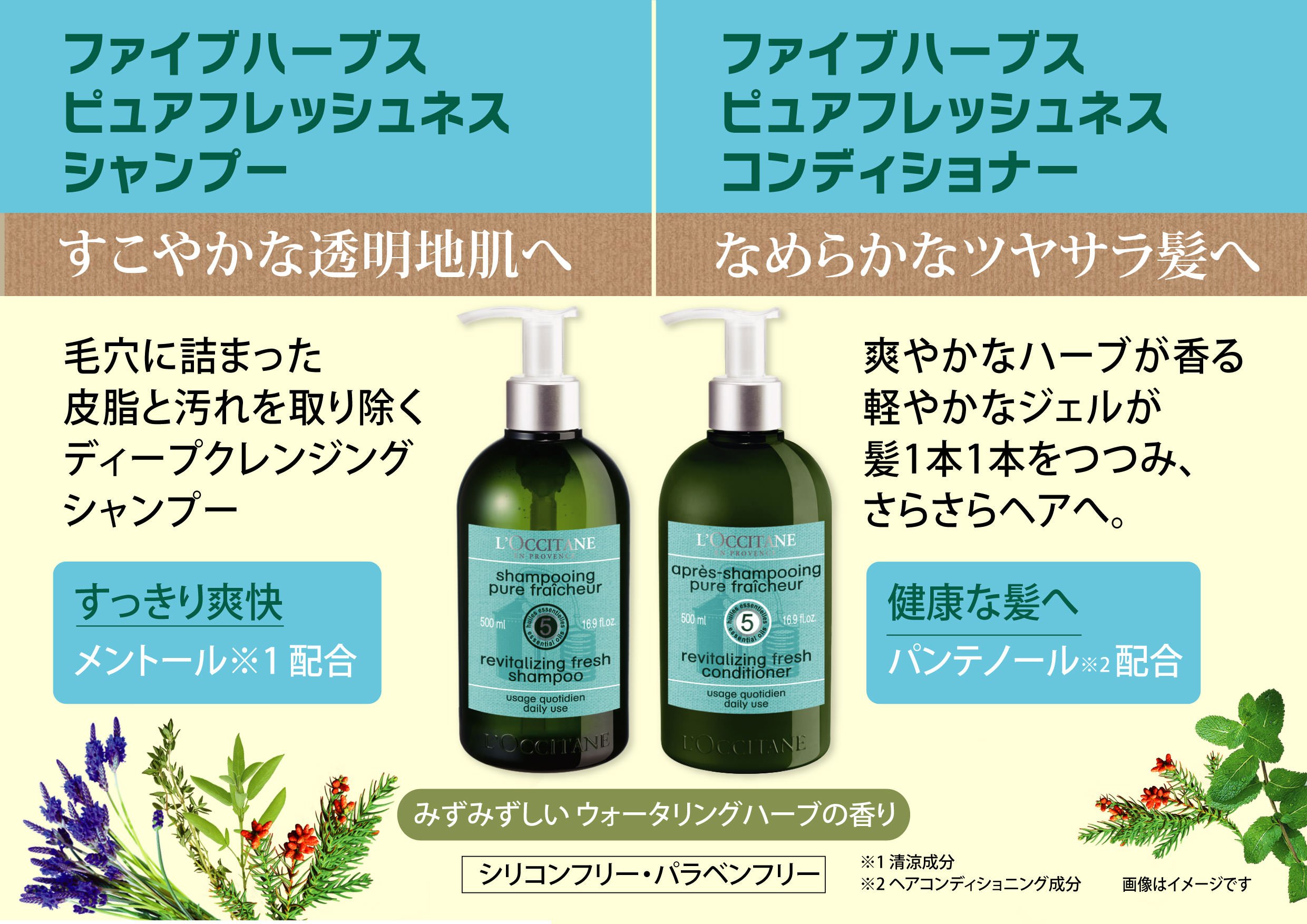 Sage Leaf Extract, Rosemary Leaf Extract, Lavender Flower Extract, Lavender Oil, Lily Mushrooms Floral / Leaves Extract, Tachinyakisuma Flower / Leaf Oil (All Hair & Skin Conditioning Ingredients) 【Set Contents / Capacity】 Five Herbs Pure Freshness Shampoo