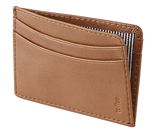 Toffee Leather Card Wallet | Ultra-slim, Genuine Leather, 5 Card Slots, Note Flap (Tan)