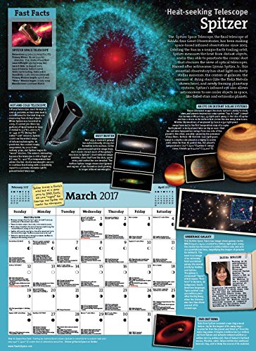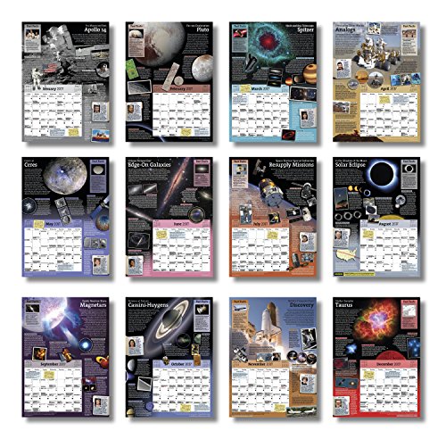 -. Feature : Over 120 space images - more than any other space wall calendar / Large-format 11" x 16" (16" x 22" when open) - 22% larger than typical calendar / Hundreds of sky events, space history dates, daily moon phases / A different space or astronomy topic explored in depth each month / Designed to be engaging for adults, students, and children over 8 years