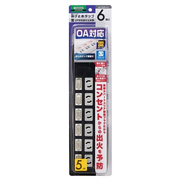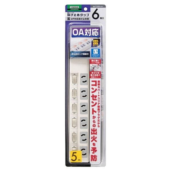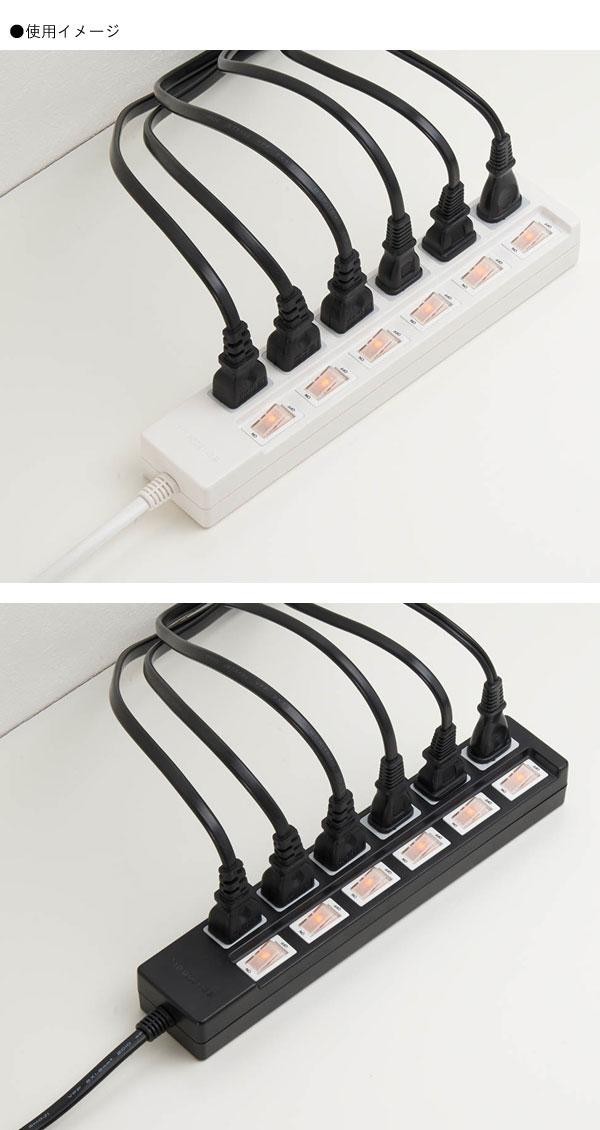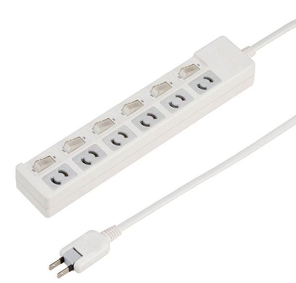 | 仕様 | 6個口 コード長:5m プラグ形状:スイング 最大サージ電圧:6000V 制限電圧:650V 合計使用容量:1500Wまで 耐トラッキング仕様 個別スイッチ付き |