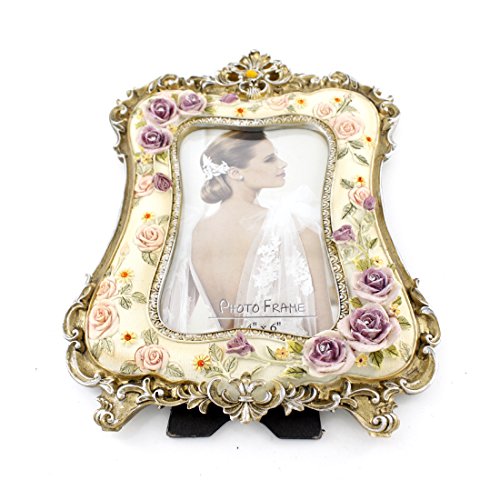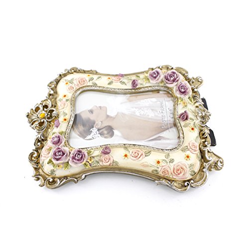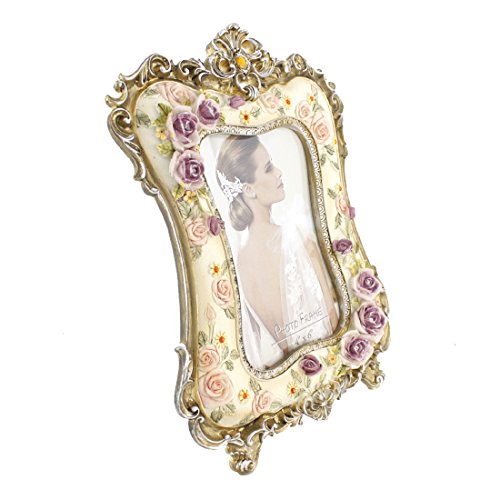 Beautiful White Crystal Victorian Flower Family Picture Photo Frame for Home Decor (4x6, Flower Blossom)