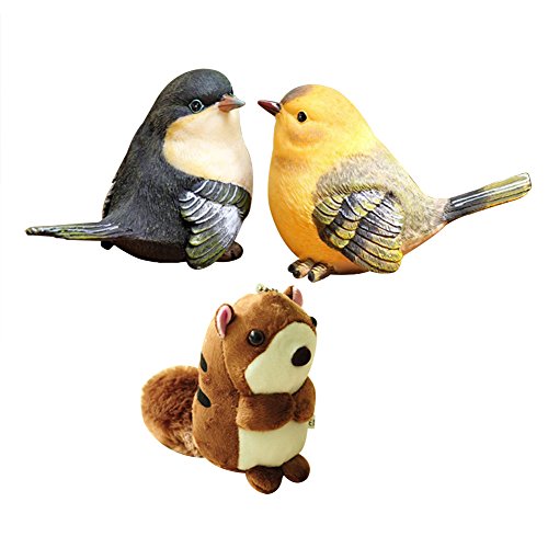 - Birds Dimension: 4.7 long * 2.7 wide * 3.4 inches height, made in resin; plush squirrel is an additional small gift