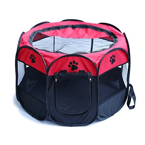 -. Feature : Materials are Made from Durable & Comfortable Breathable Mesh Material - Maximum Airflow - Security Screen - Easy to Clean 100% Washable / The pet playpen for dog puppy is simple to Install,6 Panel Keeps your pet dog and cat safe and secure indoor & outdoors,two zippered doors for convenient out and in. / Convenient space saving design means it can be stored practically anywhere when not in use. / Portable,durable, lightweight,stylish, pet playpen offers pets both the comfort and security they need and the freedom they deserve. / Great for indoors, outdoors, traveling, camping,and more!