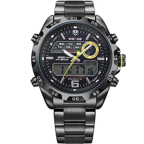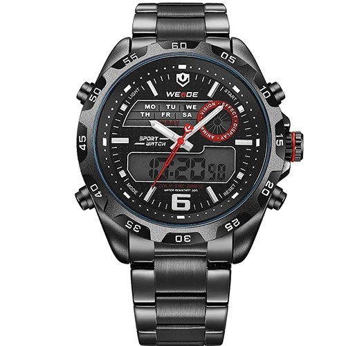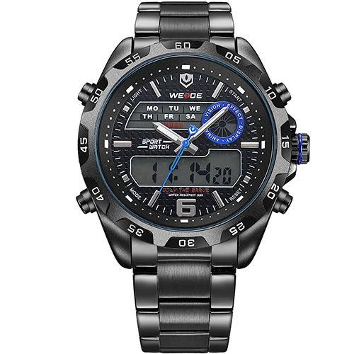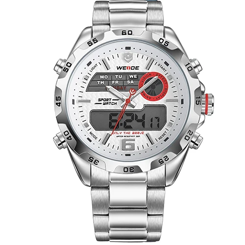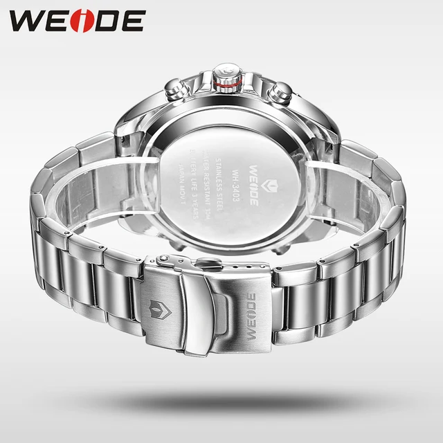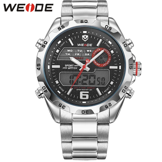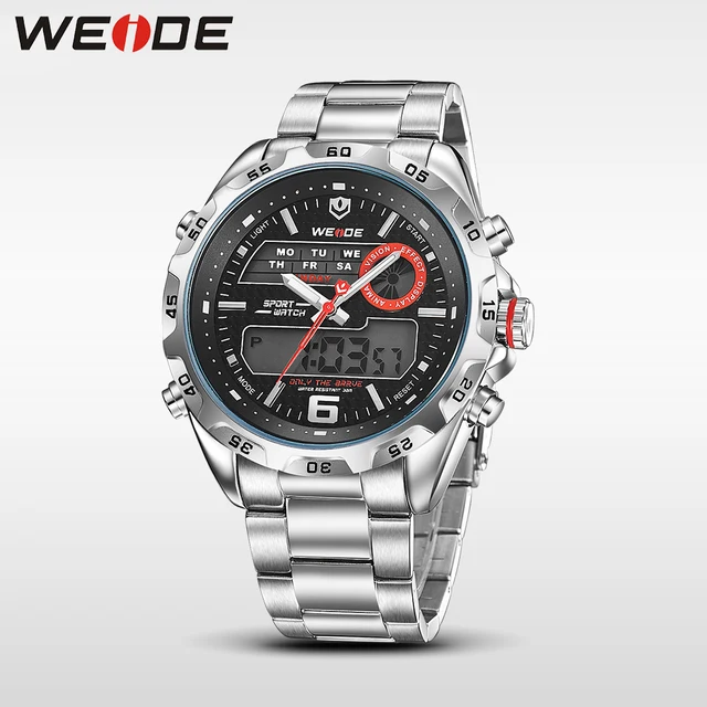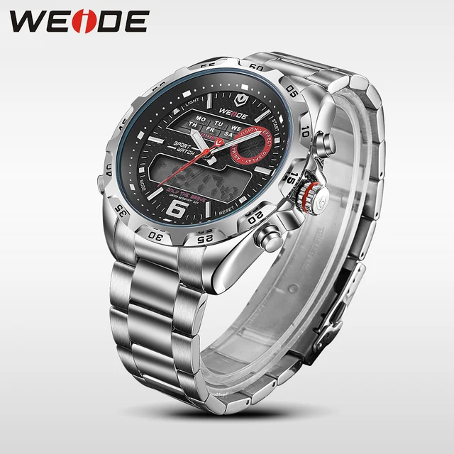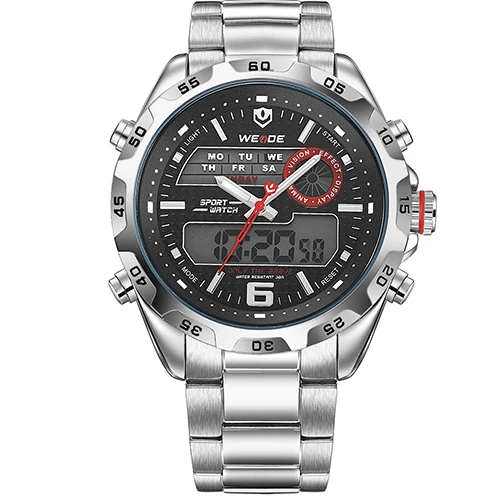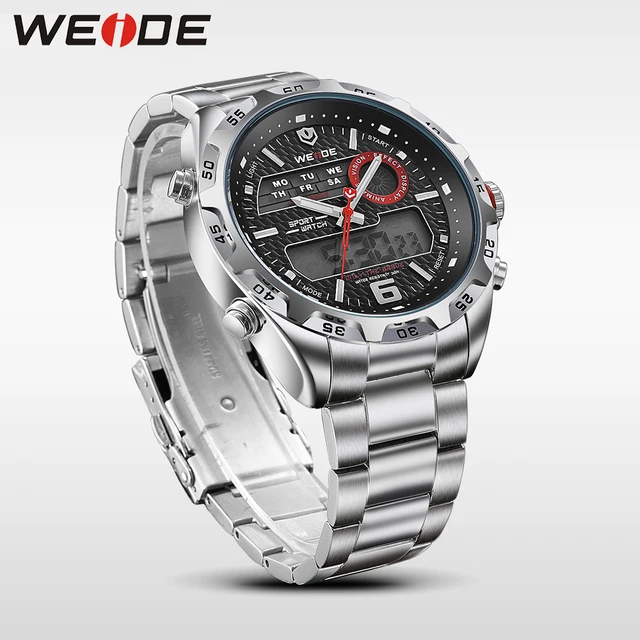 | [해외] 웨이드 LCD 비즈니스 남성 스포츠 시계 스톱워치 리피터 날짜 스테인레스 스틸 밴드 방수 아날로그 디지털 듀얼 디스플레이 백라이트 |