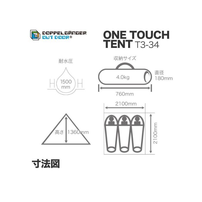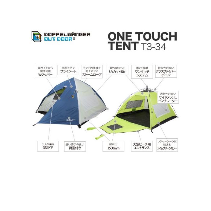 DOPPELGANGER OUTDOOR 2-3명 용 2WA원터치 텐트 T3-34 비치 텐트&캠핑 텐트의 2WAY사양