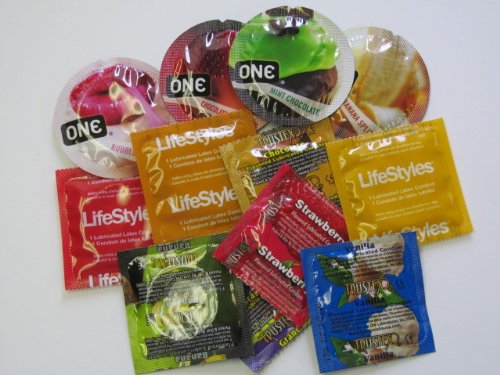 Not only are the flavors and scents great, the condoms are brightly colored to match. This sampler may includes flavors from Trustex, ONE, Glyde and LifeStyles. Flavors may include Banana, Chocolate, Chocolate Mint, Cola, Mint, Strawberry, Blueberry, Tropical, Grape, and many more.... Condomania has the right to change any of these condoms depending on what is available and in stock. *Please note, due to the nature of the product we are unable to accept returns.