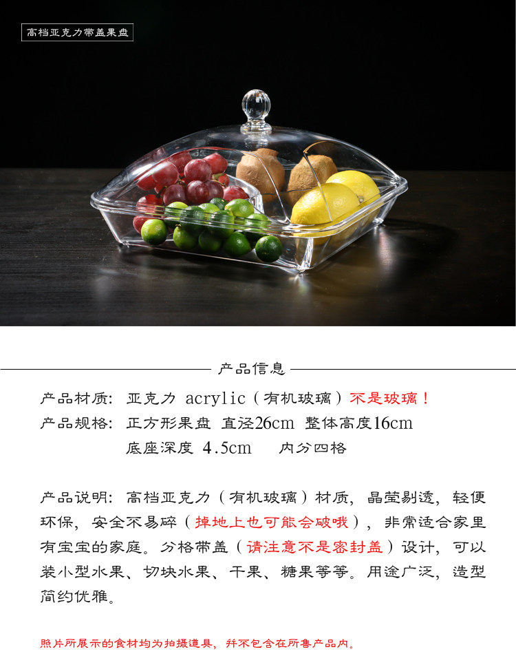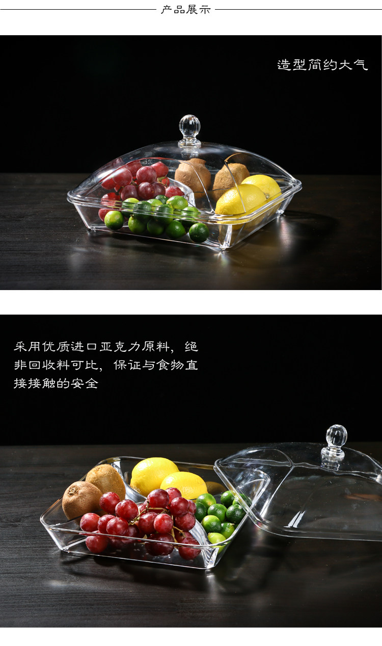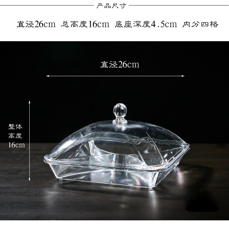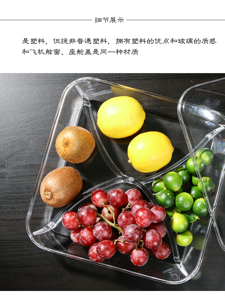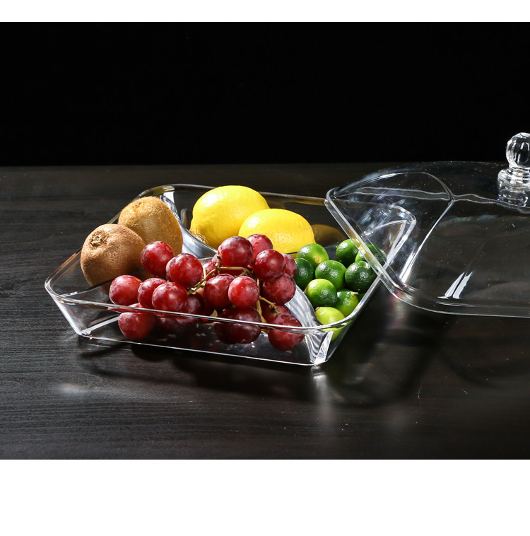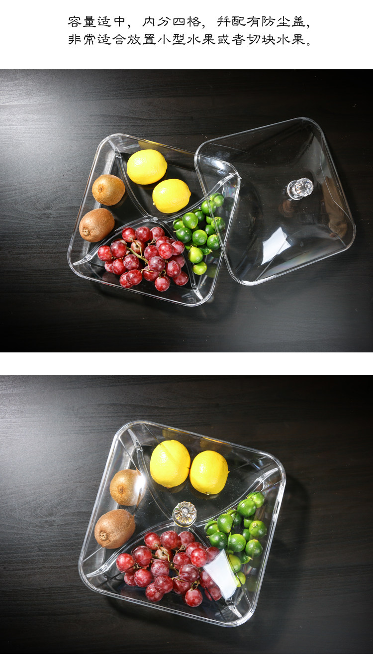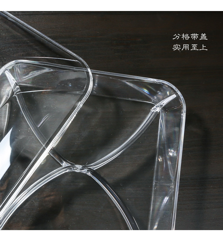 现代创意客厅分格带盖果盘水果盘干果盒试吃盘透明塑料有机玻璃