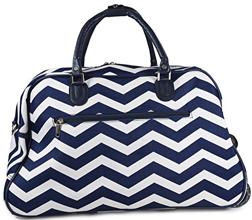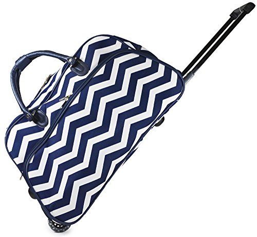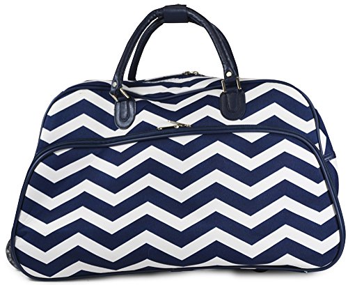 -. Title : World Traveler Navy Blue Chevron Rolling Wheeled Duffled Bag 21-inch