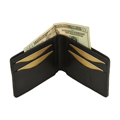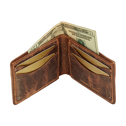 -. Feature : 100% GOATSKIN LEATHER is supple yet tough as can be! Goatskin is an amazing leather - insanely soft to the touch yet durable beyond belief - our wallets can take anything you throw at them, and will look even better with age! Dimensions Closed 4 ½" X 3 ½ " | Open 9" X 3 ½ / MEDIUM BI-FOLD DESIGN - SLIM and SIMPLE - designed to easily distribute credit cards and stay flat. Featuring 4 curved credit card slots AND 2 hidden pockets behind the slots. This style also features a large pocket for cash storage. Easily fit 8-13 credit cards, shoppers' cards, or business cards. / QUALITY UNSURPASSED: Handsome folds of leather, fine stitching, and thoughtful curves make a storage compartment worthy of the money you work so hard to earn - one of a kind. Proudly made in the USA! / HEAVY DUTY NYLON THREAD STITCHING - Durability for decades of wear and tear / STYLISH AND SLEEK: Our wallets will look at home on Wall Street - In LA - On the Ranch - and of course right in your pocket! Backed by our 100 year warranty - rest assured our leather wallets were built to last.