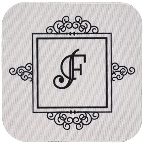 3dRose LLC cst_154329_1 Soft Coasters, "Initial Letter F Personal Monogrammed Fancy Black and White Typography Elegant Stylish Personalized", Set of 4
