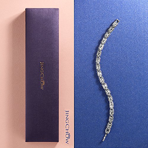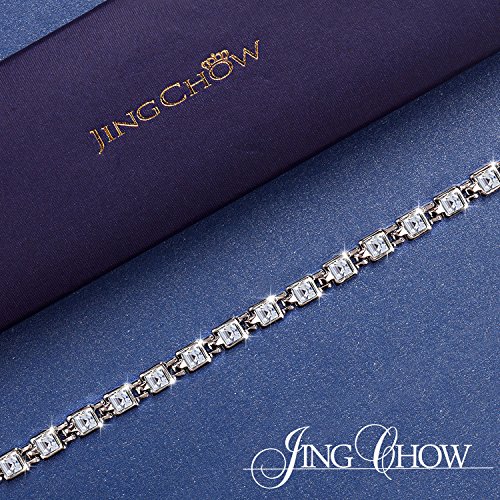 -. Feature : Chain Length: 7.5 inches. | Metal Type: Eco-friendly White Gold Plated Alloy, nickel free and anti-allergic. | Main Stone: SWAROVSKI ELEMENTS Crystal. Stone Color: Multicolor. Stone Shape: Square Shape. / NOTE:Swarovski Elements and Swarovski are Different.【SWAROVSKI ELEMENTS】It uses high quality crystal elements by Swarovski, but it is designed and manufactured by independent workshops. While Jingchow's products are using this kinds of elements, sells in Reasonable P.R.Ice. 【SWAROVSKI】A brand owned by Swarovski company. ALL the design and manufacture are responsible by Swarovski company. Sells in Expensive P.R.Ice. / Special Jewelry with Meaningful Philosophy--- This bracelet is delicately studded with 17 pcs rainbow color crystal . Each sparkling crystal represents the passion of Love. It convey a message to your lover - You are my Destiny, you are the rainbow in my life. / *** ATTENTIONS ***---"TIRAIN" is the ONLY Authorized seller by "JINGCHOW" Jewelry and ALL our jewelry has "JINGCHOW Logo".To Ensure Product Quality And Receive It Quickly ,NEVER Buy From Other Seller.We Never Authorized anyone to Sell "JINGCHOW " Products.If You Purchase Here and Receive From Other Seller, Please Report To Amazon Customer Service for Item Not As Described And Claim for Sell Fake Products And Get FULL REFUND.All items are packed with Luxury jewelry gift box.