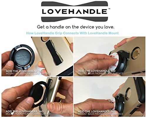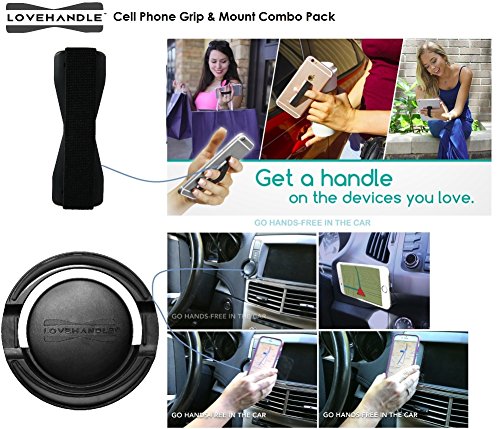 Cell Phone Holder and Grip - LoveHandle 360 Mount and Grip - Car Mount for Smartphones and Mini Tablets with 360 Rotation Technology - Combo Pack (Black Grip and Mount)