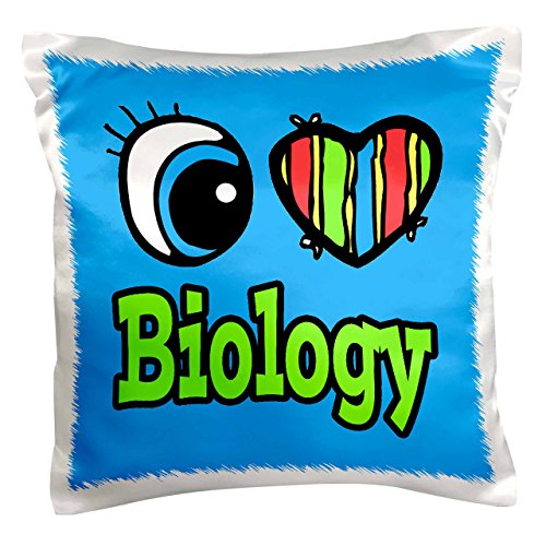 3dRose Bright Eye Heart I Love Biology - Pillow Case, 16 by 16-inch (pc_105878_1)