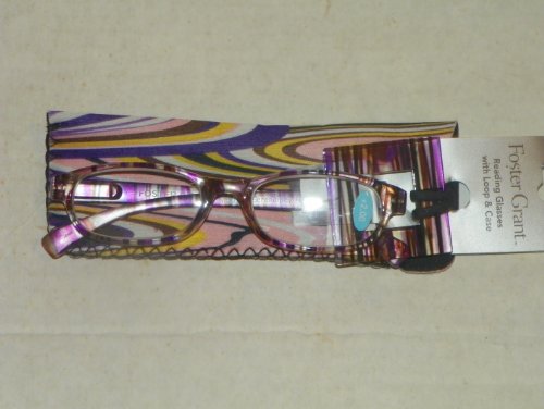 -. Feature : Quality +2.0 Foster Grant Reading Glasses / High Fashion with Case and Loop / Purple, Gold & Black Design / Not Cheap Flimsy Glasses / High Fashion you will be proud to wear and own